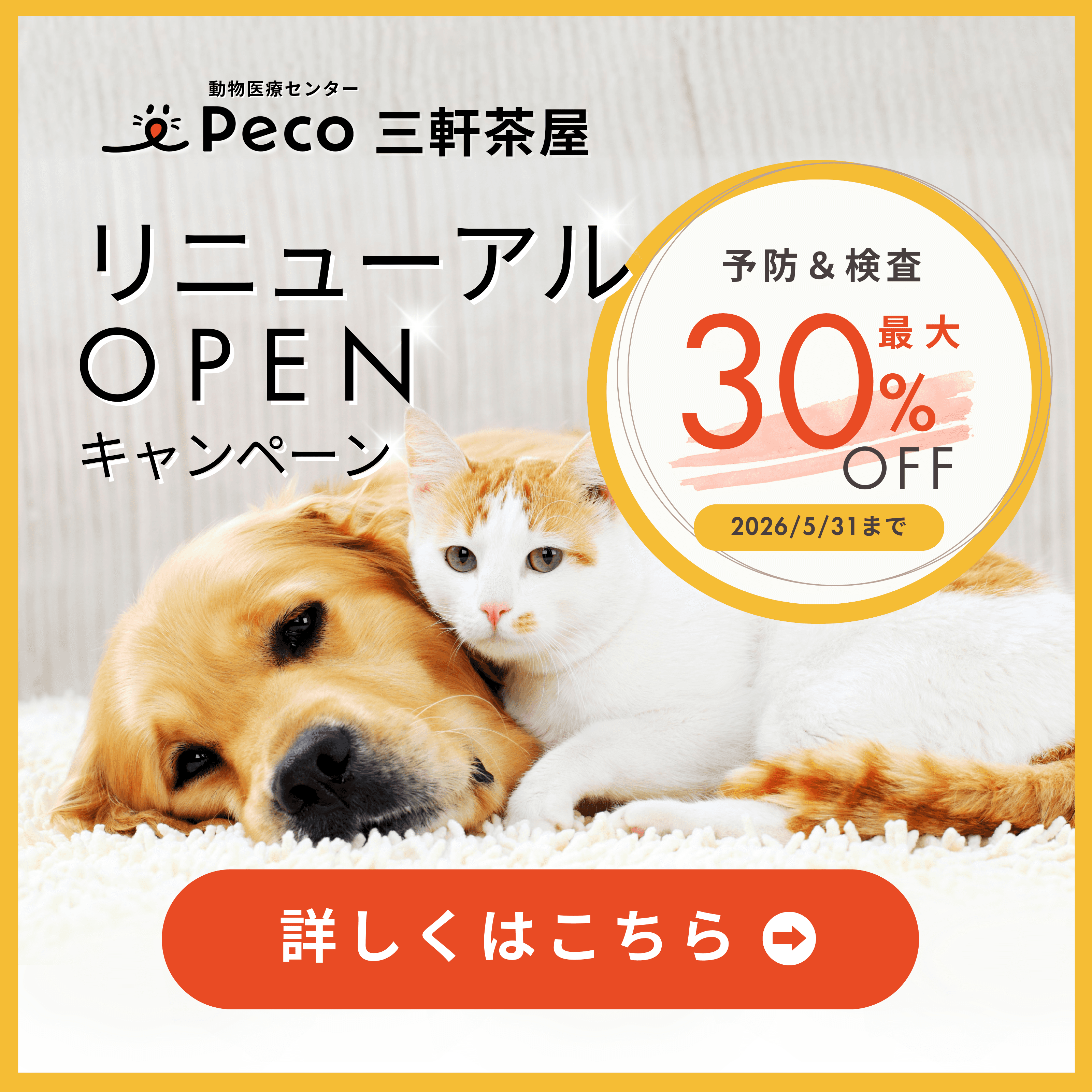 ※専門医療チームの診察や、入院・手術などは、動物医療センターPecoグループ 動物病院Peco原宿本院にて行います。